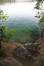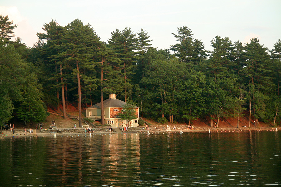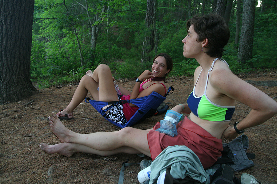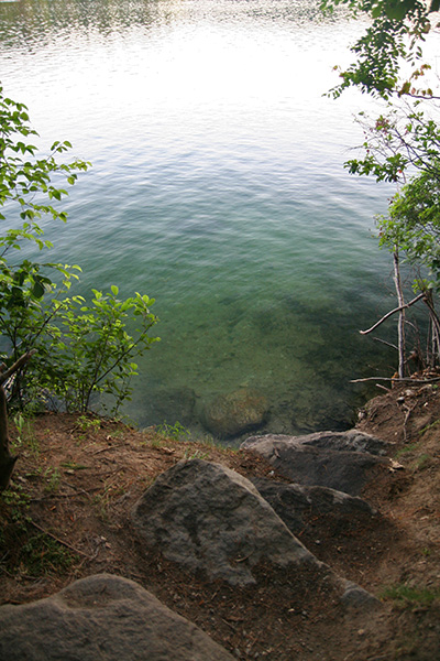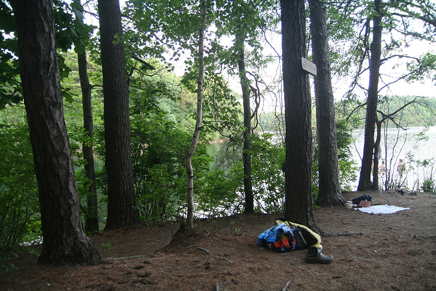 when they arrived we all circled the pond again, looking for an empty spot. michelle i'd met before, when she led a birding walk at the nearby hapgood wright town forest. jack wasn't feeling well and decided to leave. halfway around the pond at the opposite end of where we started, we decided to camp out by a clearing that went into the water. there was other people around, but it'd be the best that we could do. julie and i got into the water while michelle just waded. they for the most part were chatting about trail stuff; i added my 2¢ whenever i could. i had on my flippers, but my legs were too tired from all the biking to do any treading so i didn't go very far. the water was cold with warm spots, which were appreciated since we were in the cool shadows.