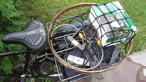 my mother and sister came back home in the evening. i'd already fed hailey, and they brought back some wendy's takeout. after i finished eating, i quickly gathered up my stuff and left for belmont since a doppler radar check revealed a vast swath of rain heading our way. it was the lightest of drizzle during the whole ride back. i had a large container of root beer wedged in one of the rear baskets. by the time i got back, maybe due to all the jostling, the soda was totally flat.