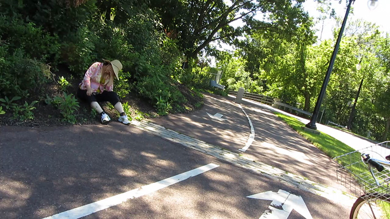 my father headed to the cafe while my mother and i headed back home. there was a slight uphill approaching the pathway along huron avenue. that's when my mother said she couldn't go any farther, said she was too tired and felt dizzy and wanted to puke. she got off her bike and rested on the side of the trail. i guess we pushed her too hard, considering that i don't think she's ever exercised in her life.