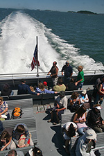 i woke up when i saw the boston harbor islands and went back to the upper deck to take photos. i wasn't seasick anymore, maybe the sleep had helped. this was probably why victor and his girlfriend didn't try to go again on the whale watch and gave me the rain check ticket instead: two much work for too little reward, especially if you're one of the lucky few who get motion sickness. enduring a nearly 4 hour round trip boat ride just to see some whale humps and whale tails is a lot to bear. it's nice to do it once in your life, but 4 hours in boston can be spent doing better things. also, whale watching would be better if one left from provincetown, since the watch site is just nearby. skip all the 4 hours of travel time and go directly to whale watching!