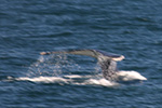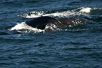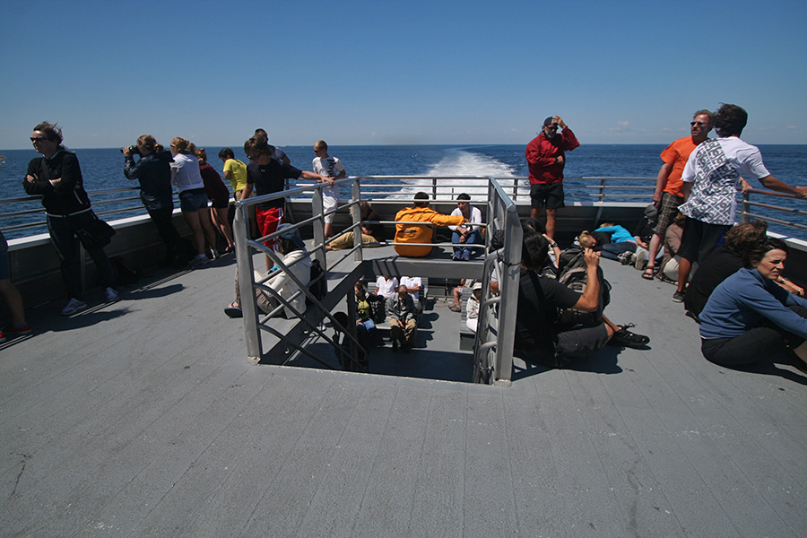 at the hour-long mark, vincent came back up and said he overheard some people talking and there was another 40 minutes before we reached the whale watch site. no wonder this whole trip takes 4 hours! most of that is just in traveling time. i took out my GPS to check our location. we were traveling southeast going roughtly 30mph. that's when i started to get a little green. just riding the boat was no problem, but reading on a moving vehicle (be it car or ship) induces immediate motion sickness (although never in planes or trains). i wasn't alone: just looking around, you could tell those who were okay and those who were ill. i saw people shambling about clutching motion sickness bags. a group was hovering over an open trash can. i quickly put my GPS away and concentrated on the horizon.