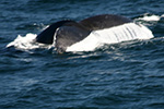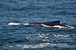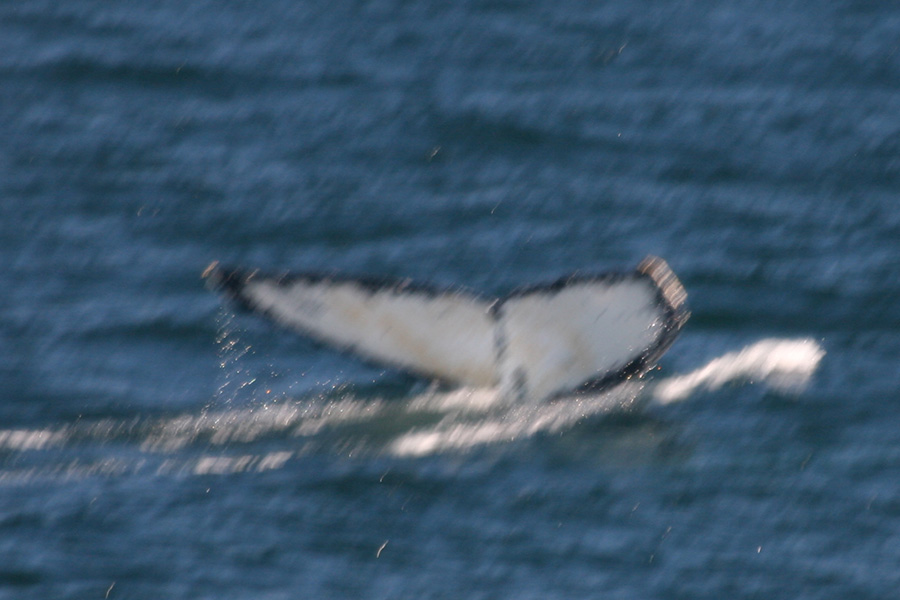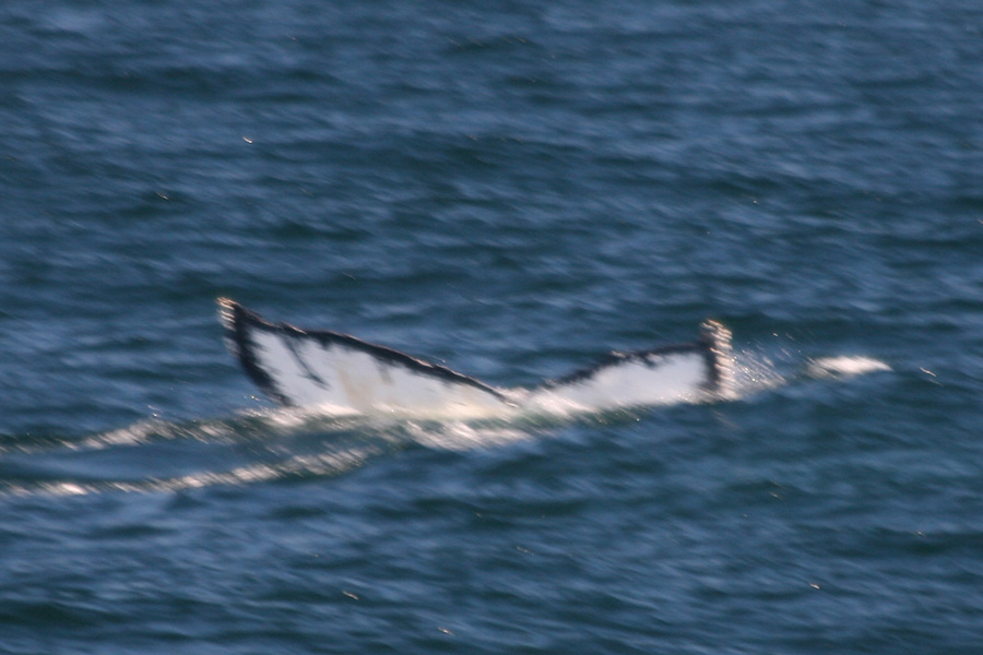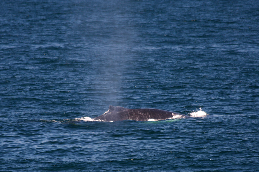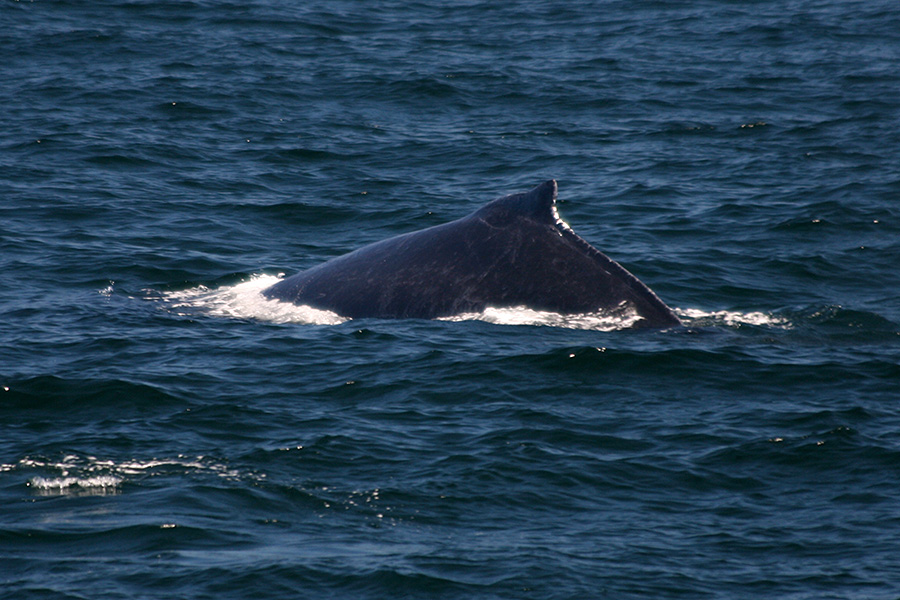 there was a trio of humpback whales. the two women who went to the front of the ship were narrating what it is we were seeing, explaining whale behaviors and identification. the whales would dive and we'd catch a glimpse of hump or possible some part of the tail before they'd submerge for 7-10 minutes before coming up for air again. every time they came up they'd also blow water into the air like a geyser, so that was one way to spot them.