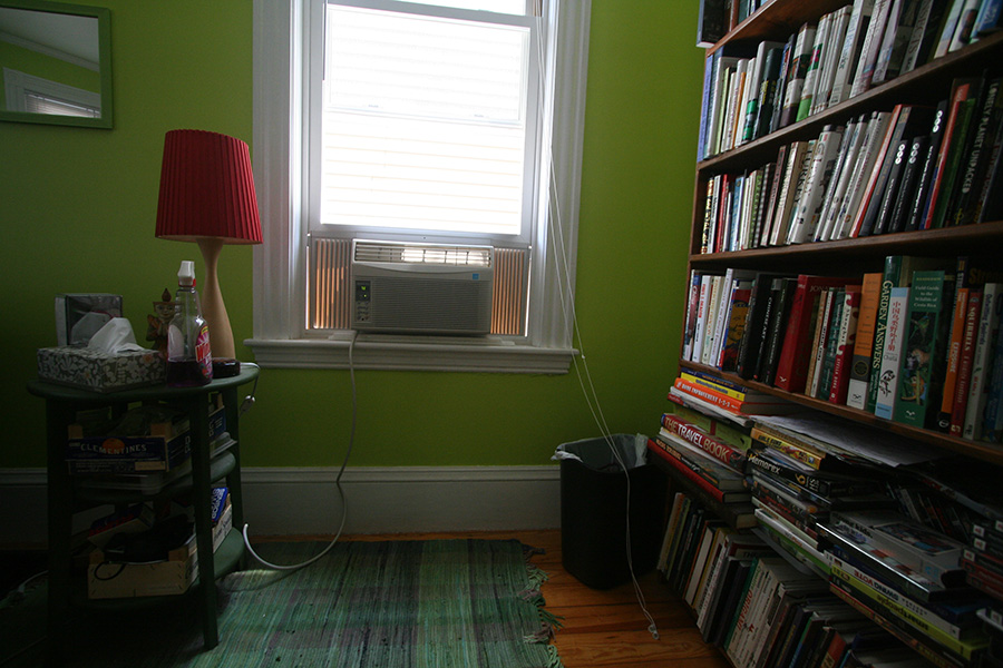 on the second day of this heatwave i finally installed the air conditioner. i went down to the basement to bring it upstairs, remembering to lift with my legs but heaved with my back anyway. i couldn't just carry it any old way, afraid to accidentally bend the delicate heat fins in the back. once i turned it on, i knew it'd be hard to turn it off. i set it at 78°F and let it run on autocool.