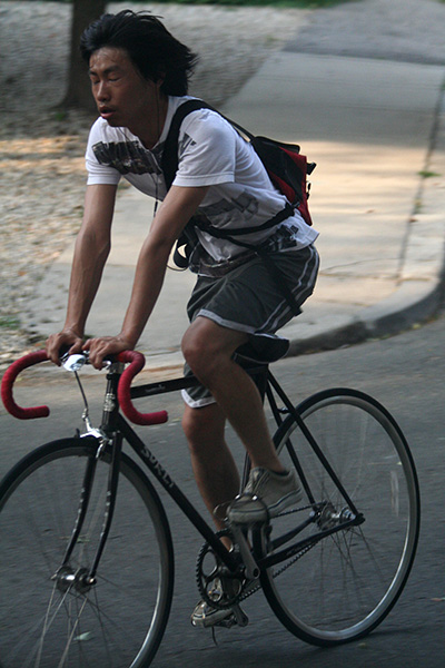 one of my early evening pastime is to take photos of neighbors coming home from work. of course i tend to notice the bikers a lot more, of which there seemed to be a lot of. the funny thing is i live on a one way street, and every one of these bikers are riding down the wrong way. bad bikers, bad!