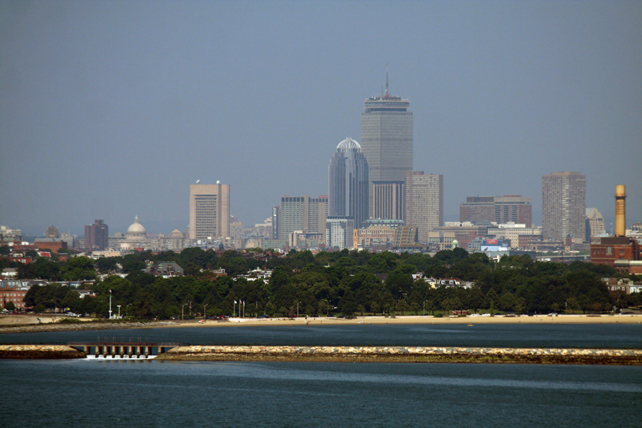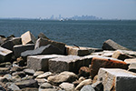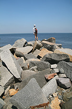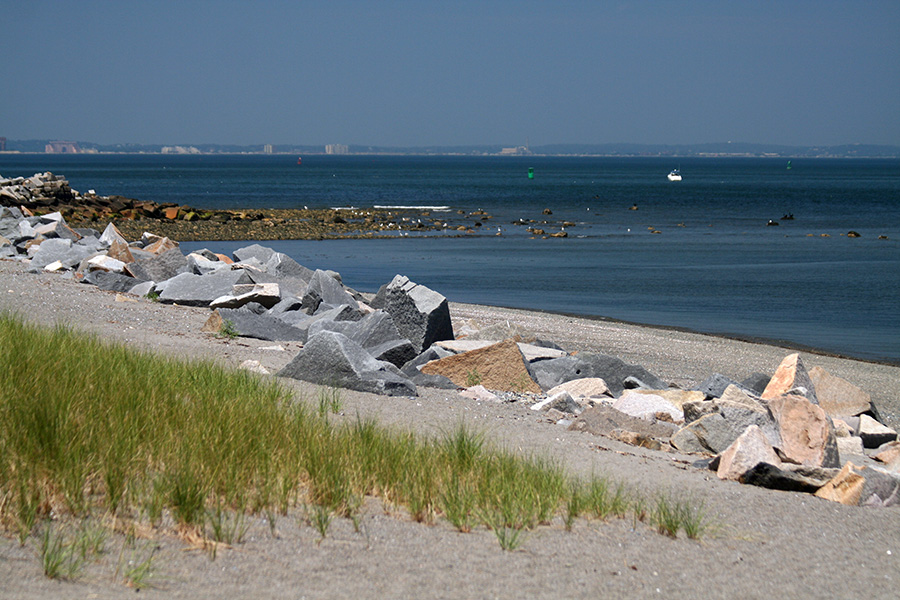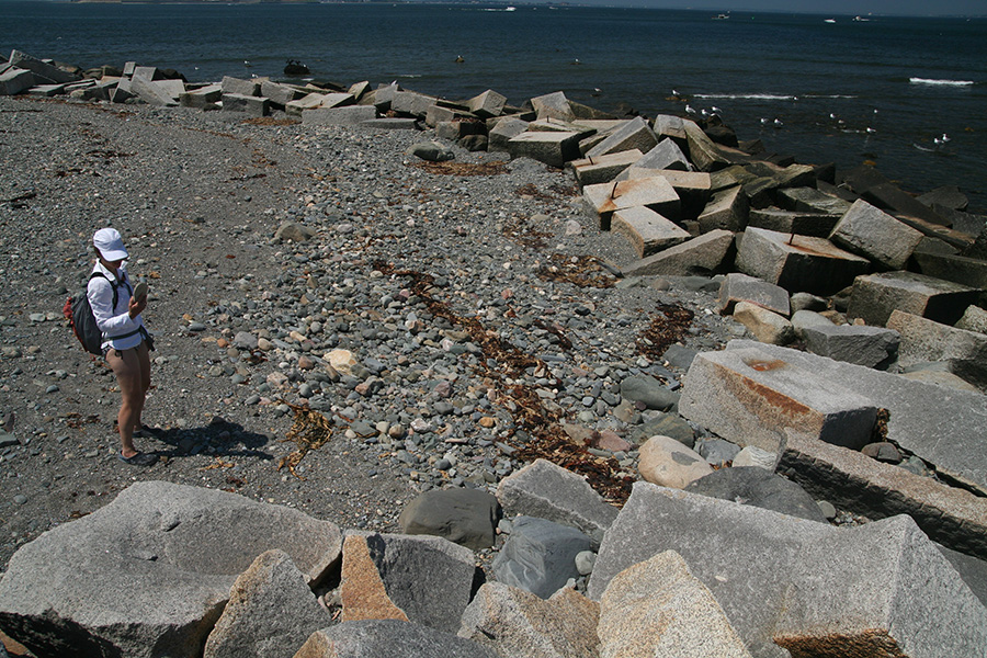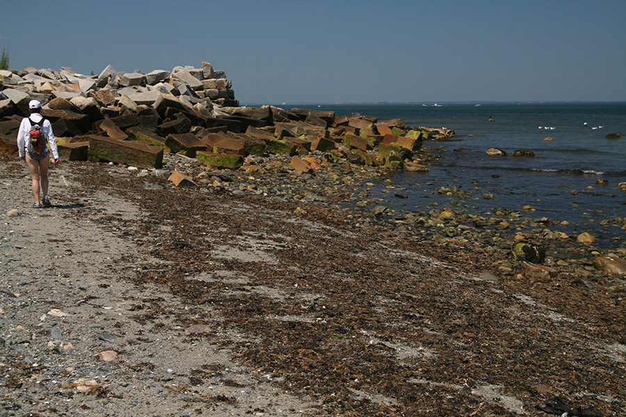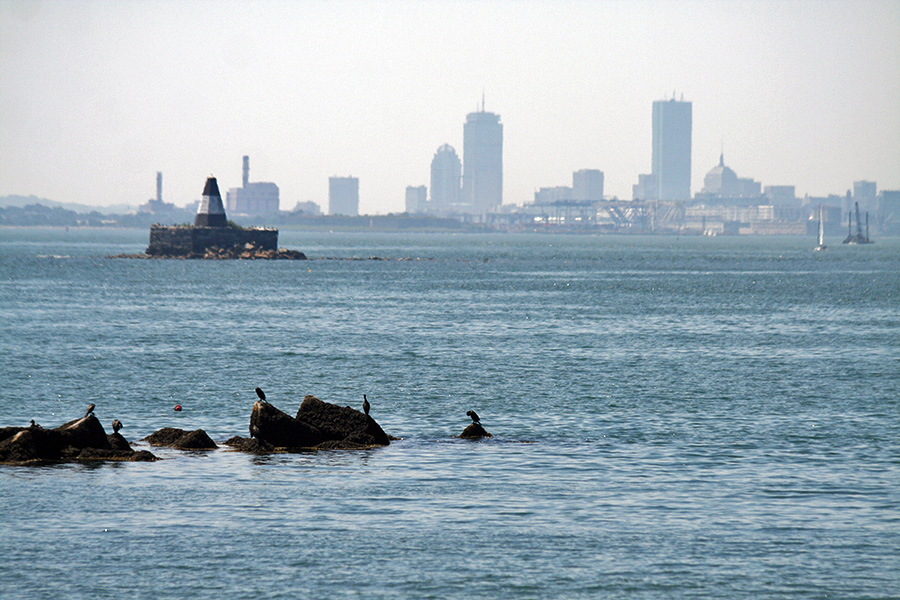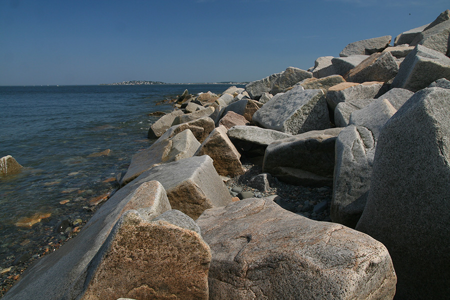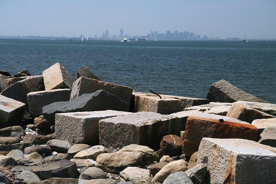 we climbed over a pile of rocks to get across the bend. boston was visible on the western horizon, approximately 6 miles away.