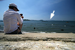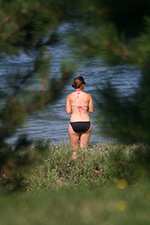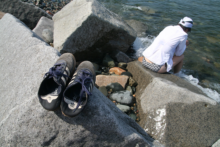 once we arrived at the beach, julie couldn't wait to get into the water. there were a few boats anchored in the water, and a handful of local families and retired couples hanging out along the shore (no swedish bikini team unfortunately). we got far enough away from them before putting down our stuff on some rocks and jumping into the water. i wasn't wearing swimming trunks but figured nobody would be none the wiser if i dipped into the water in my boxers. the sand and the stones were hot enough that it was like walking on fire. despite the blistering weather, the water was chillingly cold (julie thought it might be in the 60's). while julie had already gone all in, i was inching my way into the cold ocean. finally i just decided to quickly dunk myself and get it over with. the water felt good, like nature's own air conditioning. it's an indescribable feeling, being in the center of two temperature extremes.