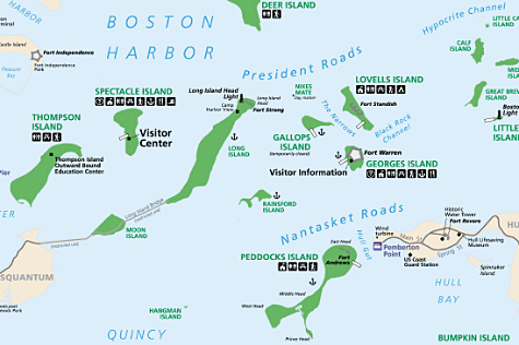 what many don't know about boston harbor is that it's not just an empty body of water stretching into the ocean. the harbor itself is peppered with islands, some tiny, some not so tiny. they're entirely free to visit; getting there is what costs money (unless you're lucky enough to have your own boat). the major islands have piers; the lesser islands can only be reached by dropping anchor and taking an auxiliary vessel ashore. i've visited georges island before,1 which acts as the hub for ferries to the other islands. i've also been to peddocks island (to this day fondly remembered as the place where i almost died).