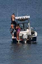 when we returned to the beach, there seemed to be a few more boats in the water, although not as many people on land. i wanted to check out the other end of the island, where the nesting terns were. julie refused to go, having accidentally wandered into the nesting site the last time she was here and nearly trampling some tern chicks. we hid our things between some large shoreline rocks and went back into the water.