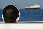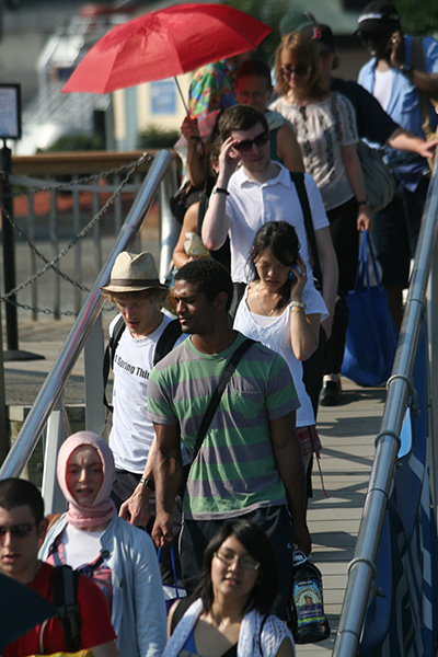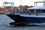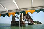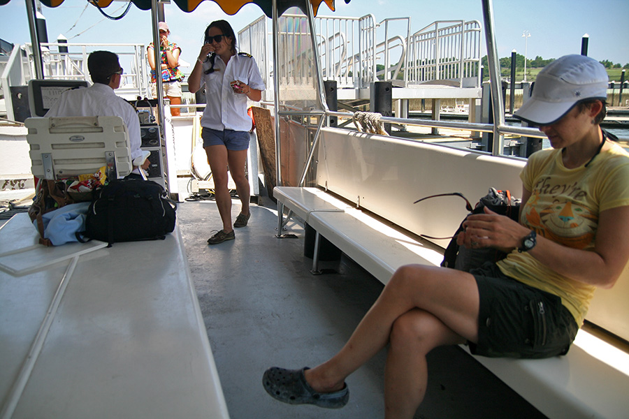 when the boat was about to arrive, an announcement was made over the loudspeakers warning people that this was the last ferry; if anyone wanted to get back to the mainland after that, they'd have to take a $175 water taxi. when the boat pulled up to the dock, we scampered up to the top to get a good seat, but it wasn't necessary since there was hardly anyone on the ferry. below deck was air-conditioned with a bar serving beer.