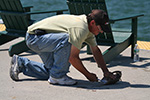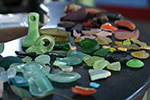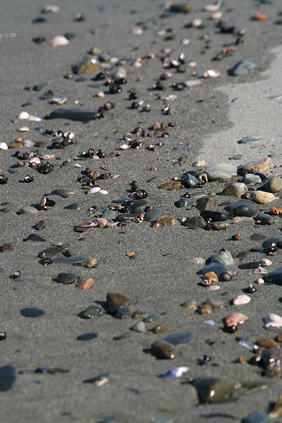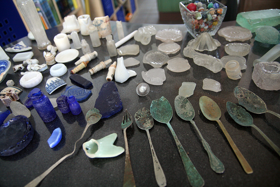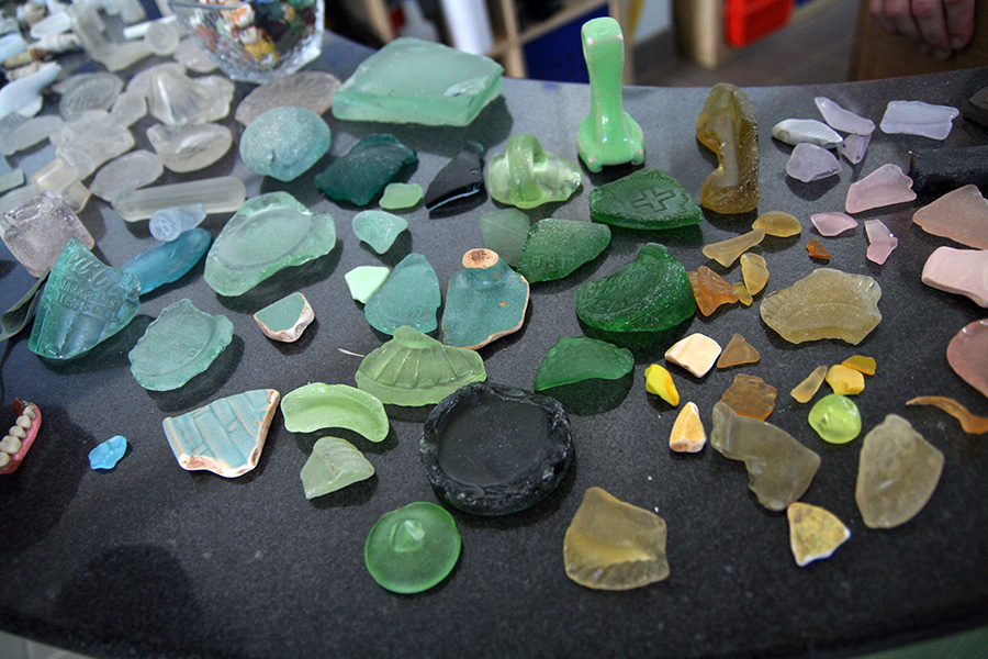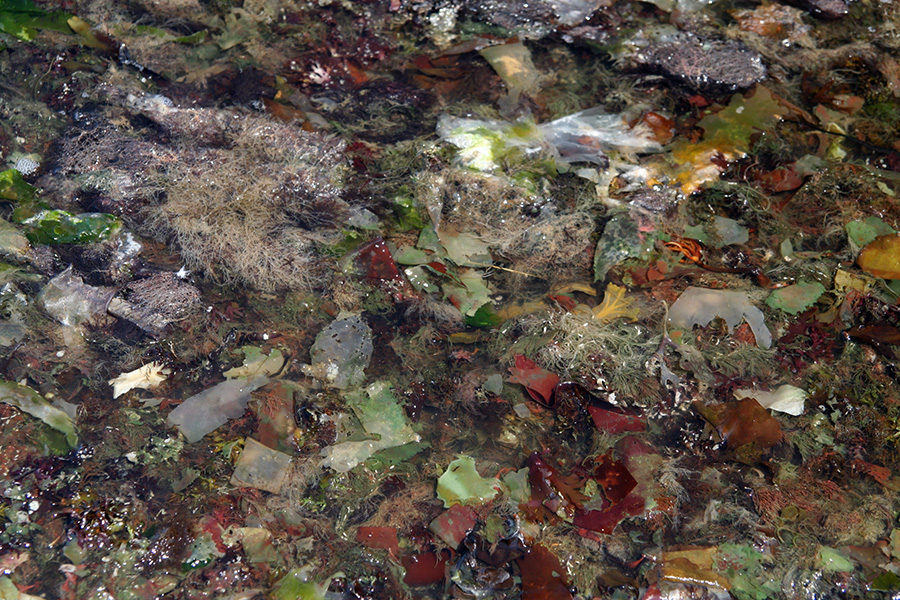 eventually we made it all the way back to the pier, from where we first landed. along the way julie had collected a handful of ocean-washed trash,