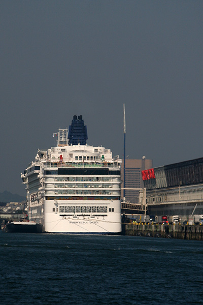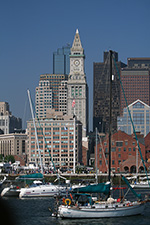 we agreed to meet at the porter square station around 8:05, rendezvousing on the last train cabin. at the scheduled time, i saw julie further up the platform, after missing the last car. we grabbed the next arriving train into boston, getting off at downtown crossing and walking to the harbor. along the way julie dropped off a fedex package at a local branch office, nicely air-conditioned on this hot day.