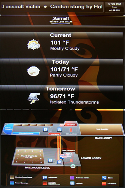 once we were back on the mainland, we went to the nearby boston marriott long wharf hotel to use their bathroom. downstairs was an LCD information screen, where we saw today's temperature: 101°F. whoa! we knew it was hot, but figured maybe upper 90's at the most. thank god for that cold ocean water!