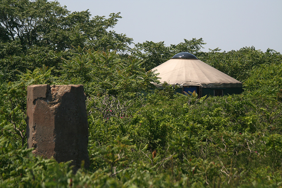 i asked the 2 rangers a bunch of questions. i was curious about their yurt. it only looks cool; inside there's no running water or electricity, and hot enough that if you "pour water on some rocks" it could be a steam room (so says the ranger). we heard back on spectacle island that lovells gets pretty busy on weekends. busy means 200+ people on the beach and the water becomes a parking lot for boats. the rangers work from june until labor day, 5 days a week. ranger short shorts worked on spectacle last month; he was one of the few that didn't live on that island but instead commuted back and forth via ferry back to the mainland. most of the people who do island camping come to lovells. lovells is the better island if you like beaches, since most of the coastline is beach.