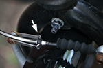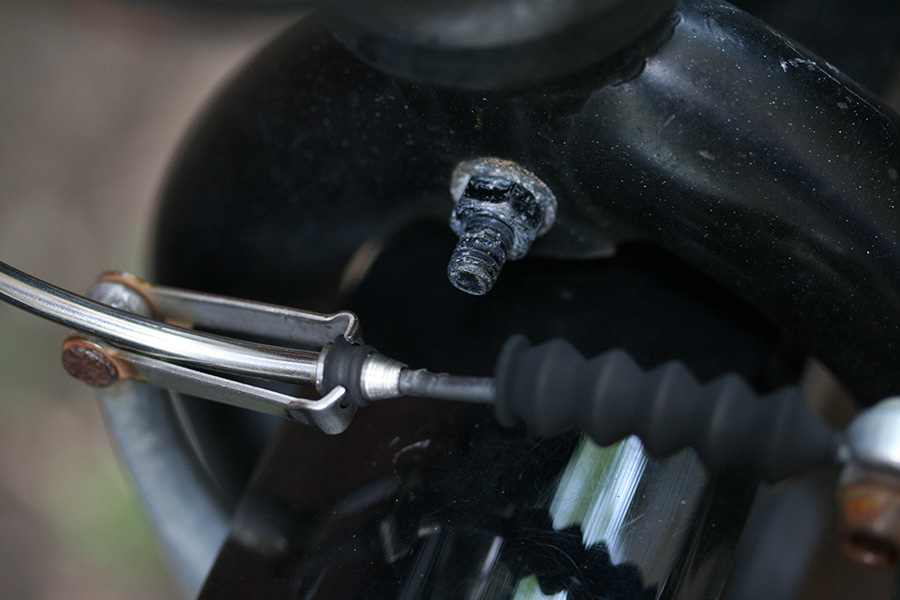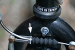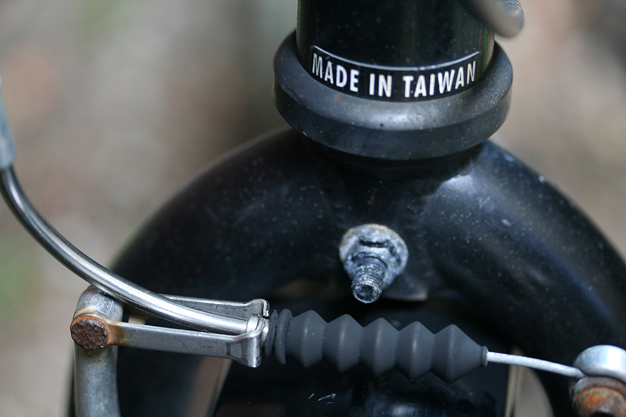 the handlebar had turned 180° and the stirrup on the front linear-pull brake was bent far enough that i couldn't get the noodle to fit back inside. finally i managed to stick but just barely, and got home without the brakes coming loose. i found a wrench and banged at it a little bit to get it into shape. good as new!