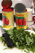 i added the tomatoes and the chopped basil and the cayenne. also into the mix was 2 6 oz. jars of tomato paste. not sure if that was really necessary, but i saw a recipe that called for it, i guess it helps to thicken up the eventual sauce, but it seems like cheating to add premade tomato paste to a tomato sauce made from whole tomatoes. i tasted the sauce in its raw phase: the sweetness of the tomato initially, but then started to become tart later on, like the taste of an unripened tomato.