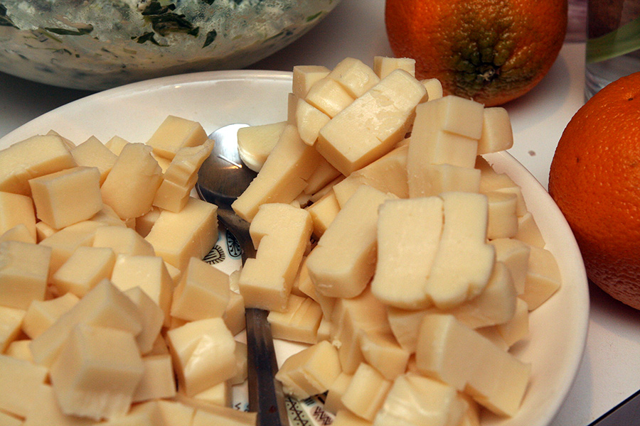 with sauce done, it was time to assemble the lasagna. while i boiled the noodles, i was also making a ricotta-spinach-2 eggs mixture and chopping up the mozzarella cheese into small cubes. once the noodles were cooked, i began layer: noodle, ricotta, mozzarella, tomato sauce, repeat. everything then went into the 375°F oven for 45 minutes.