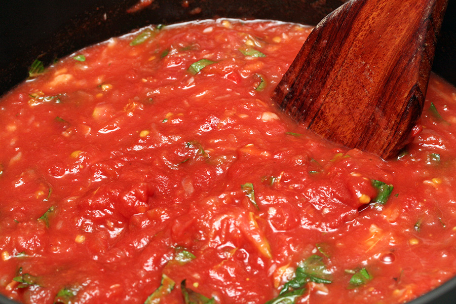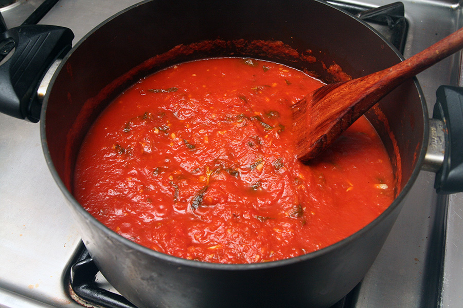 i let the tomato sauce simmer for about an hour. when it was finally done, the taste had mellowed but it was still tarty.