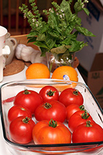 i wanted to make 3 things this week: lasagna using tomato sauce made from real tomatoes; zucchini bread (with garden grown zucchini); and turkish delights. i finally made my grocery list and headed out the door. first stop was to the garden, to pinch off some basil and to see if i had anymore tomatoes. i already had 6 back home, but managed to collect 4 more. next i went to market basket.