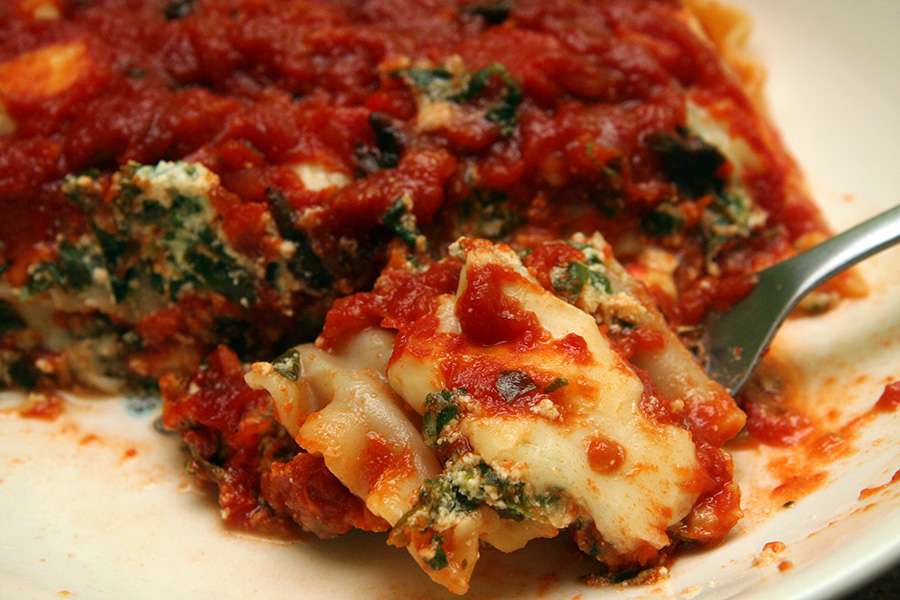 i ended up having a large square of lasagna (1/6). it tasted fine, but the sauce is the one thing i notice the most. i don't want to say the tartiness is overwhelming, but you can definitely taste the tomato ingredient. making homemade tomato sauce actually isn't very hard, but i think the challenge is getting the right balance of ingredients to blend together.