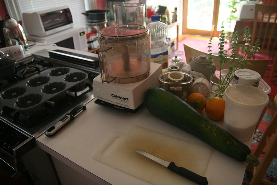 my alarm went off at 9:00. time to make the zucchini bread! what i thought would be a simple matter of mixing the ingredients ended up taking me about an hour. last night i had the foresight of laying out all the things i need on the kitchen counter, but even then that didn't help me out too much.