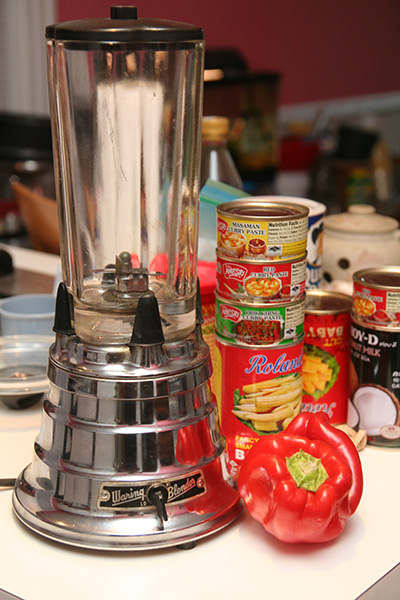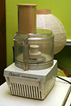 i knew there was a food processor, but the shiny silvery thing with the base i thought it might be one of those propane-burning cooking lantern. turns out that was just an old waring blender. as for the food processor, another cuisinart.