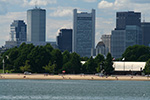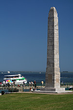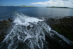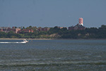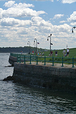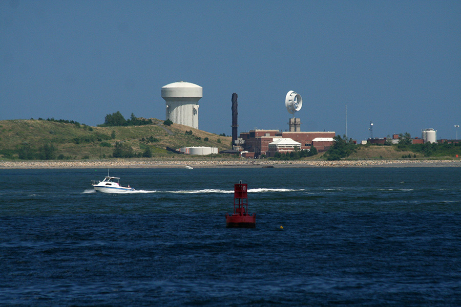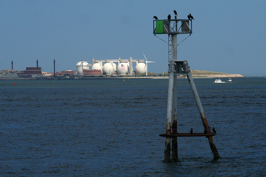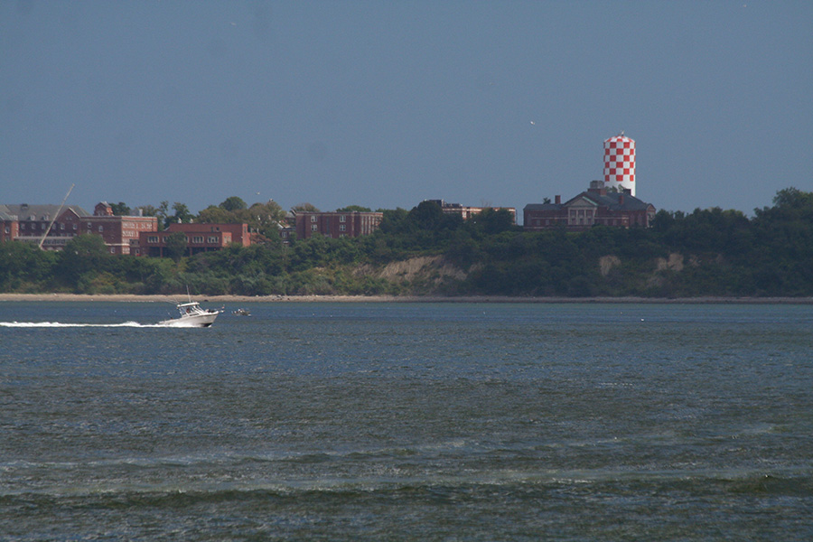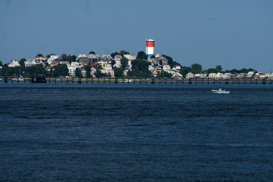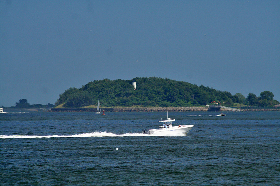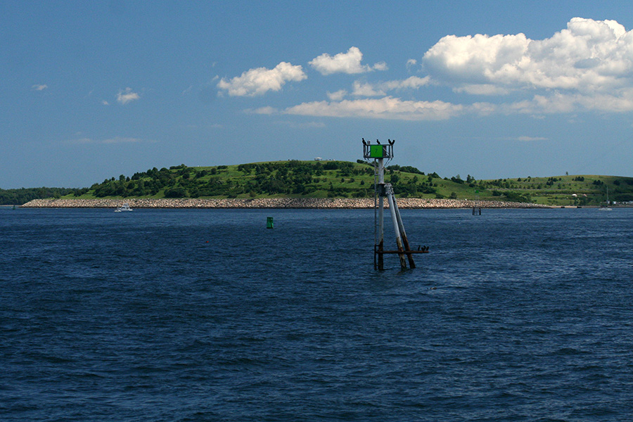 i couldn't make out any lighthouses from castle island, other than the long island head light hidden in the trees. i bought along a harbor islands map but the only ones i could make out were long island (restricted-access) and spectacle island.