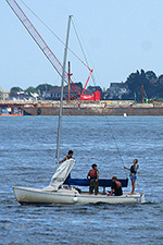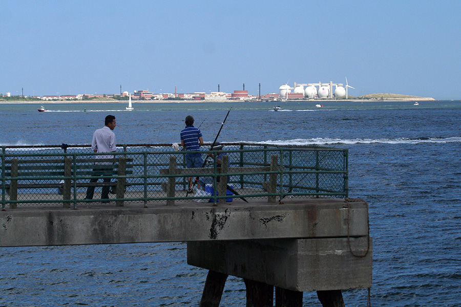 i made my way to the fishing pier, where men camped out with their rods waiting for a bite. this was also the side of castle island closest to deer island. i was just there yesterday, i thought to myself as i looked across the water. "i like your t-shirt," i heard someone say to me. i turned around and saw a fat southeast asian boy. it took me a while to make the connection, until i realized i had on a cambodian t-shirt. turns out he and 2 other friends were cambodian. when i asked him if he ever goes back, he said no. i didn't quite get it until he told me he was actually born in the US, and never visited cambodia before. sitting next to them was an older asian man, also southeast asian looking, but turned out he's actually vietnamese. i had a lengthy chat with him. i thought maybe he was their chaperone, but they actually didn't know each other. hie was his name. he came to boston in 1982 age 20, supposedly to go to school but instead decided to work in the hotel industry. his last job was at the charles hotel in harvard square, but he got into a work-related accident and has been collecting disability checks for the past 3 years ($1400/month). so in his spare time (which is a lot) he comes out here fishing. the biggest one he ever caught here was a 48" cod. he just got back from a 6-month trip to south vietnam, where he's originally from. he was married once, and even has a college-aged son here in boston. he told me he couldn't read or write, but that wasn't entirely true, maybe not at a high school level, but probably just as much as my own parents. he has a girlfriend of several years but he doesn't want to live together because he enjoys his independence. i liked talking with him, he had a certain scrappy street smartness.