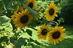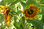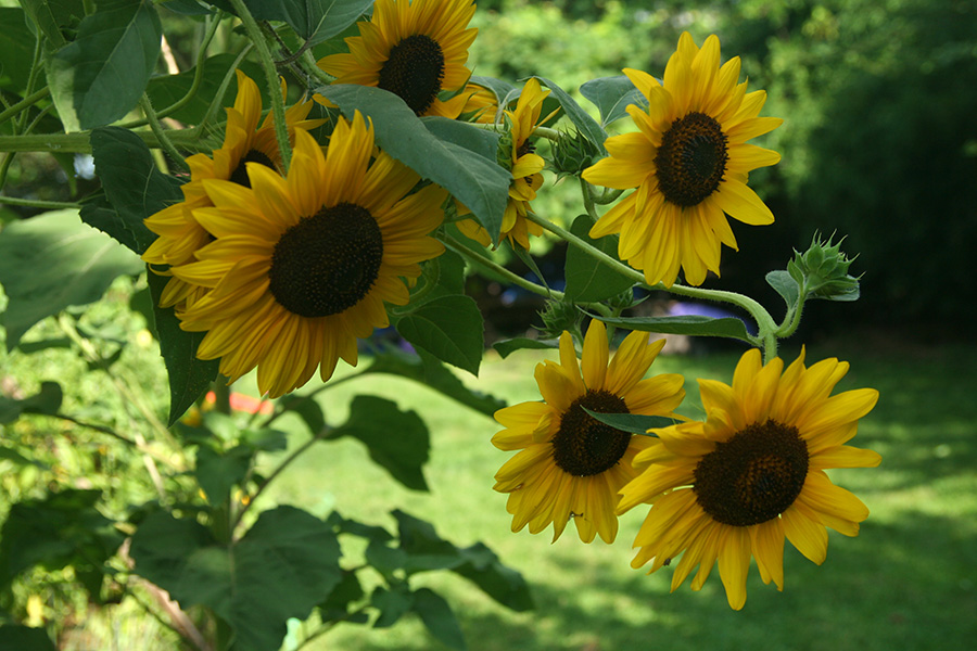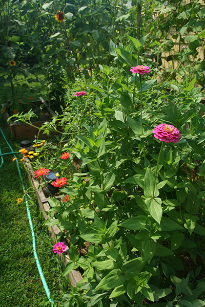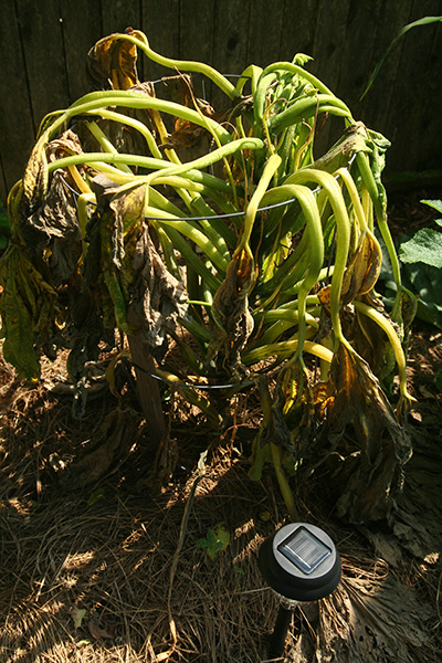 for the first time there are a few sunflowers that actually have a bit of orange on the petals. the first zucchini plant is completely dead now. whether it succumbed to disease, to root rot, or squash vine borers, i won't know until i do an autopsy on the dead plant. the 2nd zucchini is still alive but has been very productive. there are also some powdery mildew on the leaves and it'll probably be dead before the end of the summer.