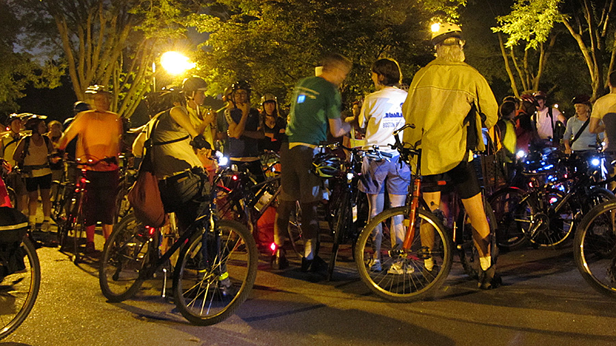 this was 23rd annual night ride, so this was an event with some history. there were several tour guides, and i read/overheard that one of them was an architect, another person a city planner, and a few more. they had a route planned but other than the organizers, few knew exactly where we'd be going except it'd be around boston.