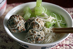 i found hailey sleeping in the living room. after i let her out to use the bathroom, she went back to sleep on the couch. when my parents got back home in the afternoon, my mother whipped up some thin noodles with meatballs. while my father went to go take a nap, my mother was busy knitting in the living room, watching some japanese soap opera on her ipad 2.