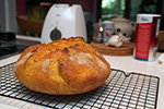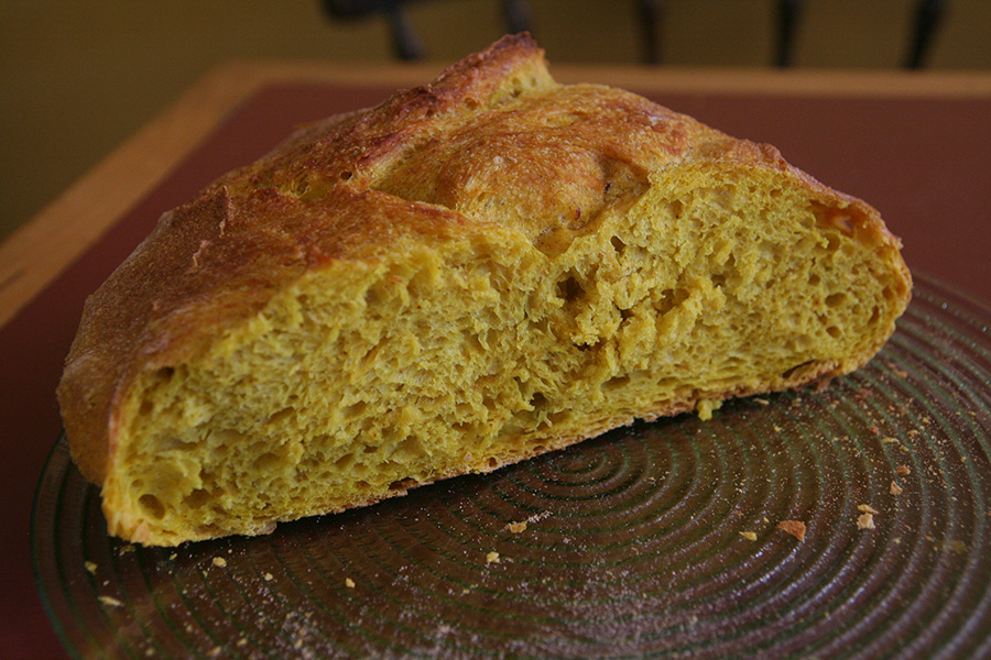 i went to the cafe to present the latest bread to my parents. my mother turned to my 2nd aunt and told her, "i knew he was making another bread!" turmeric is pretty much flavorless, but leaves a yellow color reminiscent of indian food that i almost expected the bread to be curry flavored. my parents and my 2nd aunt ate half while i took the rest home.
