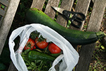 after coming back home briefly, i left the house again for the community garden. my plot has become a jungle of neglect, but this late in the season, i don't think the community garden committee will be giving me any grief about maintenance. i picked off all the red tomatoes and red chili peppers i saw,