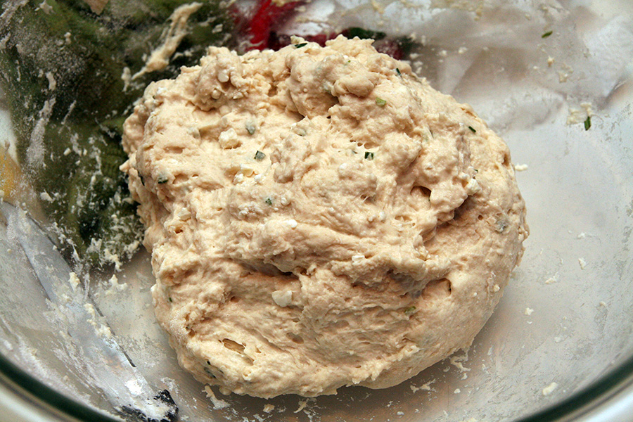 and i thought some feta cheese who add some savoriness to the bread. judging from the just-right dryness of the dough, i'm hopefully this will turn out to be another good one. i wasn't sure when to add the flavor ingredients, so i decided to dump them all in from the start, saving me from having to fold them in later.