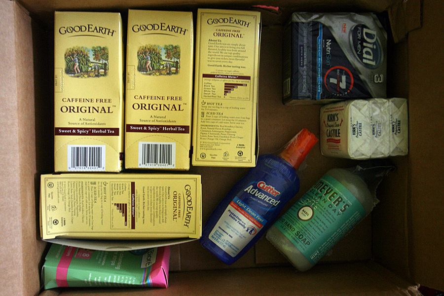 on my doorstep was my drugstore.com purchase. after i showered, i ate some leftover chicken and rice my mother gave me at the cafe.