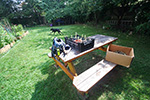 i have bad hearing so i'm easy startled. that's what happened when my sister released hailey out into the backyard and she ran up right behind me. since there'd be a lot of rain this weekend, i tried to use up as much water from the rain barrels as possible, watering some of the raised beds with an attached hose.