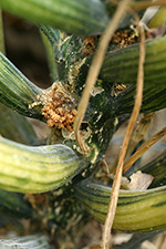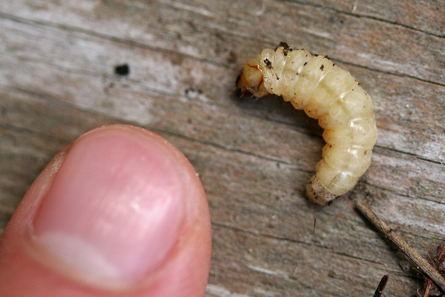 i never thought to check the dead zucchini squash plant for cause of death, since i just assumed it died naturally from some sort of root rot. but the more i thought about it the more suspicious i became, and today i confirmed my suspicion: it was actually a squash vine borer infestation into the central stem. i saw the tell-tale frass from several boring holes. when i went to uproot the dead plant, some fat SVB grubs fell out. why it only affected this one plant i don't know, when there's another squash next to it that seems fine (so far). not sure what i'm going to do next year. i was pretty vigilante this year, but these eggs must've been laid much later, when i thought i was safe.