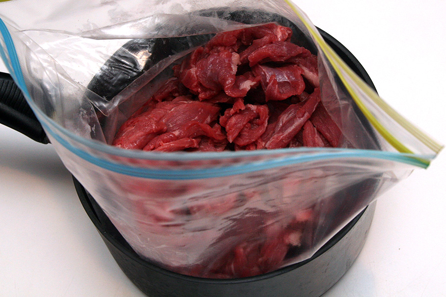 i promised my mother i'd make some more jerky this week. after leaving one of the roasts in the freezer, i brought it out in the evening to slice it into strands.