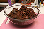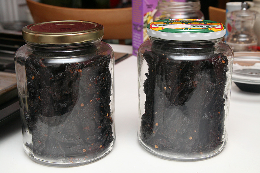 in the evening i started a second batch of beef jerky. this time i was following my own recipe, so i left out the cumin. i made it extra spicy, and used fresh ground sichuan peppercorns instead of just half-heartedly crushing them. i also added a tbsp of rice wine for no reason, maybe it'll add a further layer of complexity.