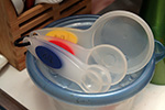 coming back, i found a box of free kitchen utensils. i picked up a set of pyrex-brand color-coded measuring spoons, a match to a set i already own. looks i managed to score some free stuff after all!