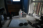 the took the motorcycle to the cafe to drop off two jars of jerky i made last night. i felt a little guilty giving them away because they weren't very good. not enough flavor and far too dry. i told my mother the batch i was drying today would be far more delicious. my mother packed me some leftovers for lunch before i returned home. i also showed my father some jacket cover ideas for my great uncle's book.