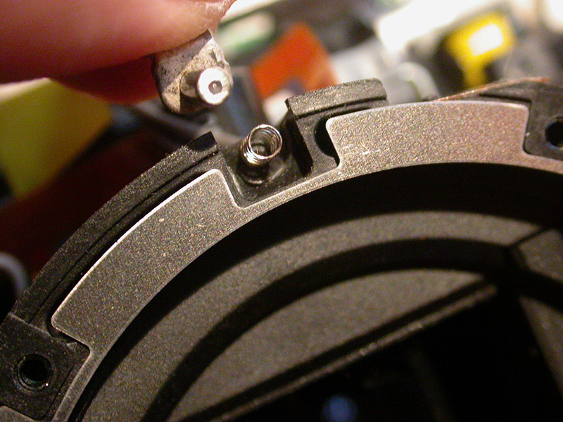 what i didn't realize is i didn't need to disassemble the lens mount (the silver metal ring) in order to remove the front cover. i found out too late and ended up stripping one of the tiny screws holding the lens mount in place (3 out of 4 should be enough though). i also for a time lost the tiny spring holding the lens lock pin in place. it fell inside and the camera and no matter any amount of shaking it wouldn't come out. finally i saw it on the table, must've came out when i wasn't looking.