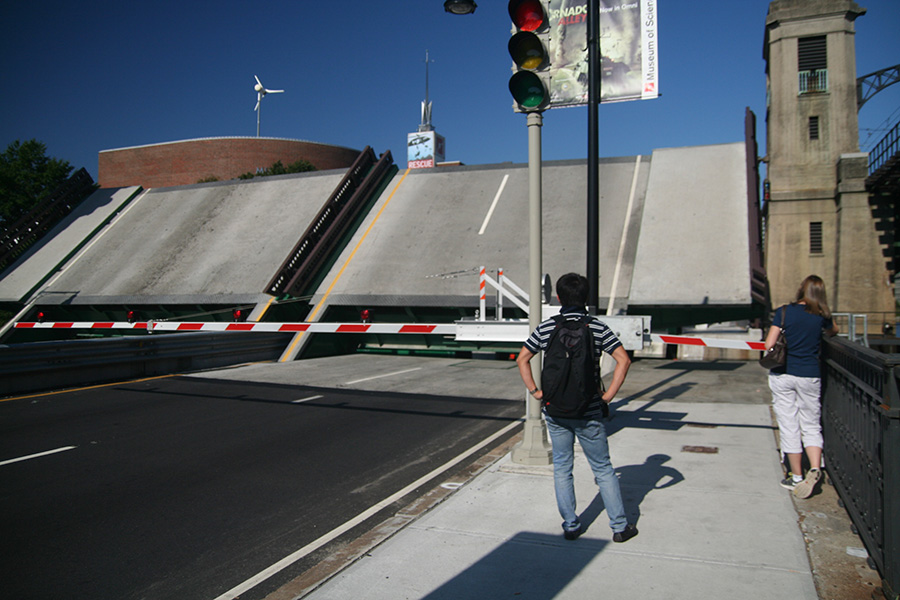 crossing back on the mcardle bridge into chelsea, the drawbridge was up, just like it was on the craigie bridge back in cambridge-boston. figuring the return trip would be easier, i still managed to get lost, ending up on 2nd street again when i should've been on williams. i also got my shoelaces stuck in the pedal and had to pull over on the side of the road (right in front of pollo campero) to take off my right shoe and unwind the shoelaces.