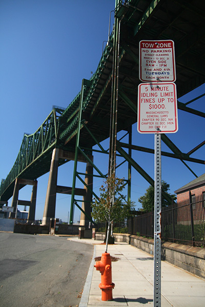 at the sullivan square rotary i didn't have to do anything hard, just kept to my right and followed the road north across the alford street bridge (even then i still managed to get a little lost, making my way up main/mystic avenue instead). there was heavy construction on the bridge and traffic was reduced to a single lane per side. the pedestrian walkway on the eastern side had been completely demolished, leaving just the western side (something i'd need to remember when i come back).