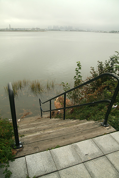 crossing into east boston, we stopped at the condor street urban wild site. from here you can get a lovely view of the chelsea river and a large parking lot across the water.