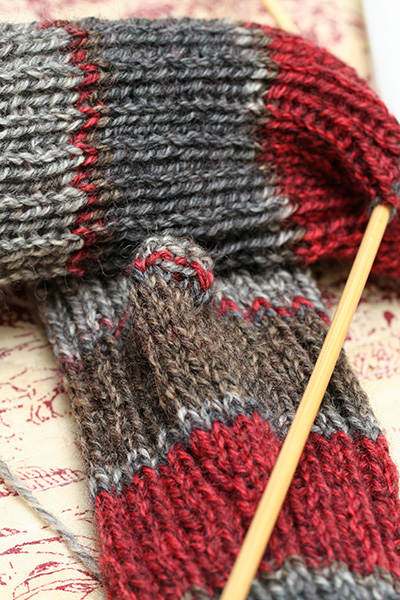i started a new knitting pattern, redoing the outlined check but alternating the colors: light ovals on a field of charcoal heather. i only managed to do a single row of ovals before i tired out. i'll try to finish it tomorrow. i'm trying to keep the yarn tension even this time.