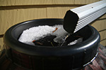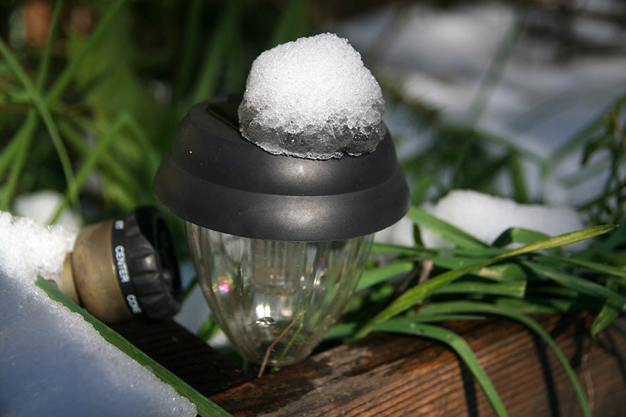 the weight of the snow partially collapsed the 2 row cover frames in the backyard garden. once we cleared the snow off though, they popped back into shape.