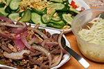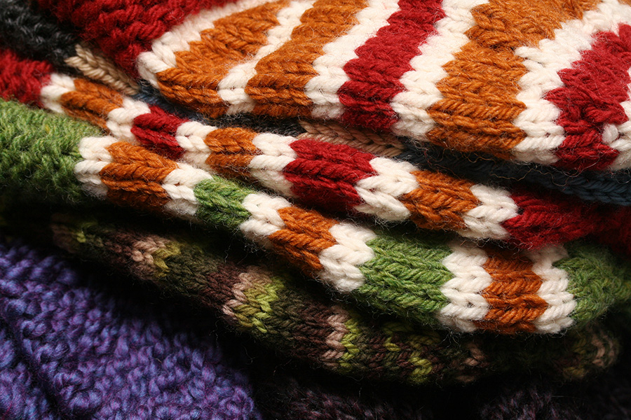 i found my mother at home knitting another thorpe, this one in green-orange-white. she was doing traveling jogless stripes this time, since the last one with stationary jogless stripes still came out joggy. she fixed me some leftover beef noodles for lunch.