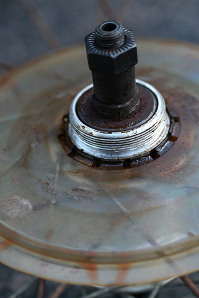i needed to remove the freewheel assembly from the rear wheel. this time i had the proper matching socket to fit over the freewheel remover. instead of using a ratchet socket wrench (which might break under the tension), we used a solid socket wrench instead. my father beat the wrench with a mallet. we tried using a pipe to gain more torque. we even tried it on the vise. none of them worked. finally we went back to the pipe one last time, this time with my father applying opposite torque on the wheel when i pressed down counterclockwise with the pipe extension. we heard a ripping sound as the freewheel came loose. success!