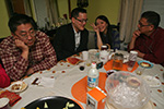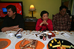my 2nd aunt and 2nd uncle came first around 2:00 when my father returned from the cafe with the raw marinated turkey and an array of ingredients. the 25 lbs. turkey didn't go in the oven until 2:30. my mother told everyone else to arrive at 4:00. bin bin and her boyfriend showed up exactly on time, followed by my aunt lili and matthew. my godmother and alex (weiwei) arrived well after 5:00, followed by jack and his taiwanese girlfriend. finally bin bin and her boyfriend went to go pick up my great uncle a bit before 6:00.