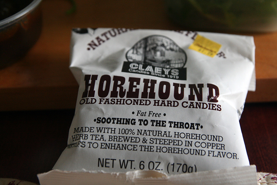 1 with a name like horehound i couldn't resist not getting it. it's a real thing apparently: Marrubium vulgare, a perennial herb (resembling mint) native to everywhere but the new world. it has a distinctive bitter yet sweet taste, hard to describe. it's been used traditional as a folk medication to treat things like sore throat, indigestion, and inflammation (thanks wikipedia).
